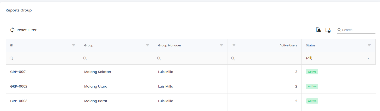 Group Report can be accessed through Report menu > Group. This feature shows data that related to the group.